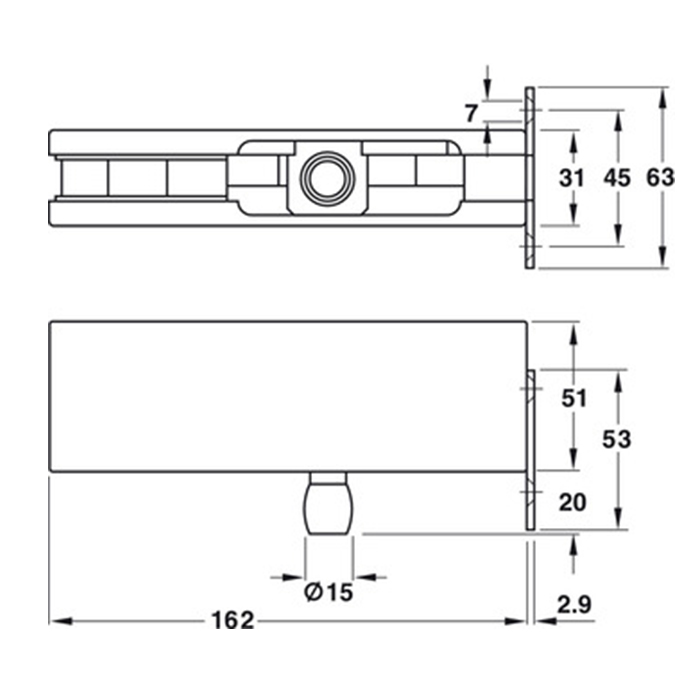 Overpanel pivot patch fitting, with screw-on plate for wall mounting, Startec