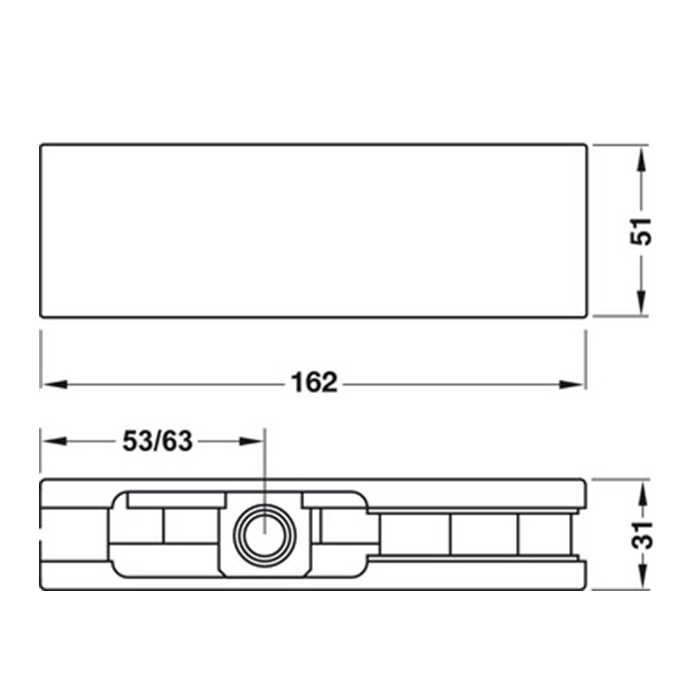 Patch fitting for double action doors, top, Startec, for all-glass double action doors